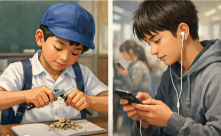 私達、団塊世代は小学校に入学すると、鉛筆を削るために全員が小型のナイフを持って登校していました。そのため、低学年の先生は安全な使い方を徹底して教えていました。その後、鉛筆削り器が普及し、ナイフを持つ必要はなくなっていきました。